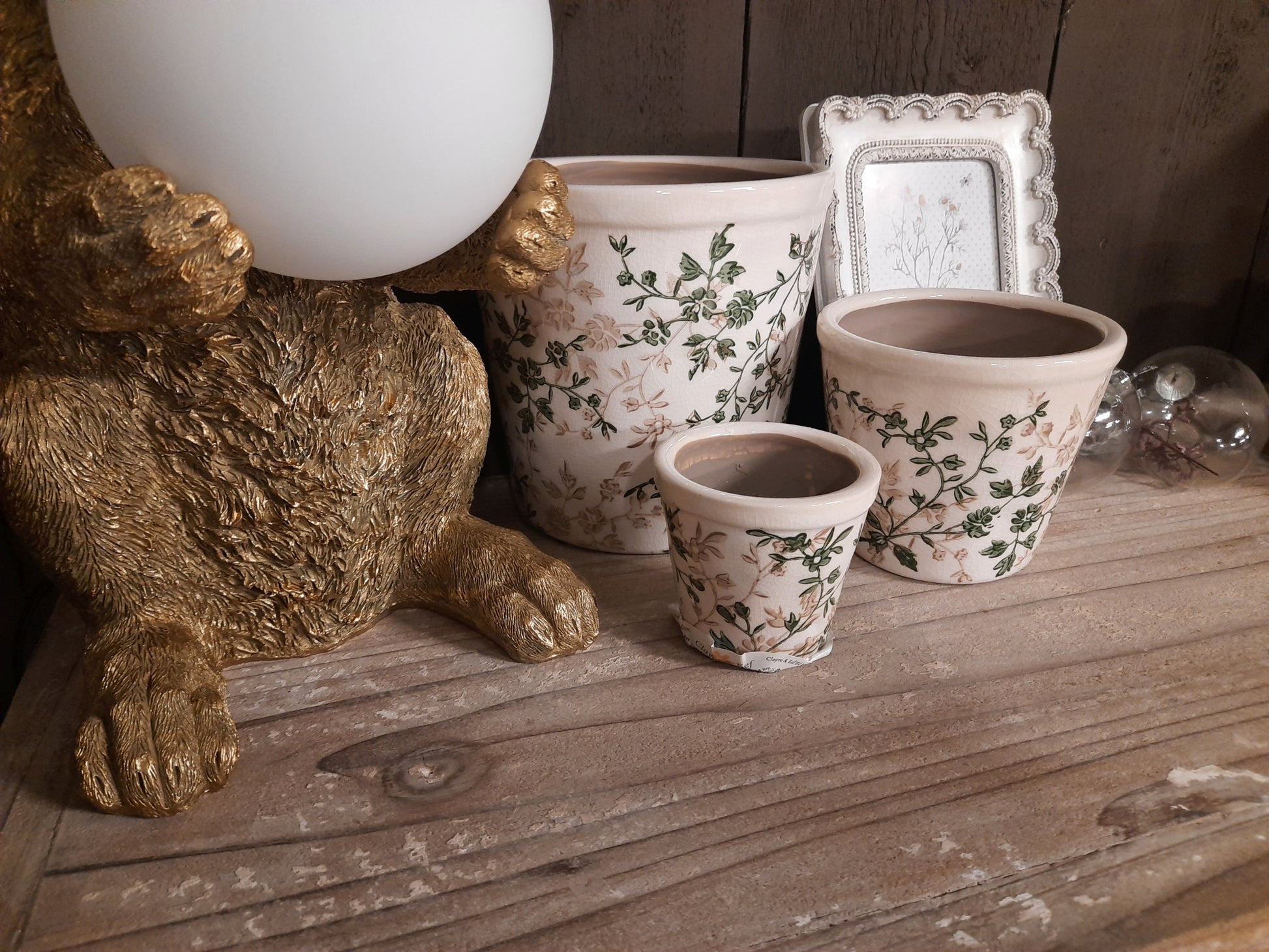 Dieser Blumentopf aus Keramik in harmonischem Grün-Beige mit zartem Rankenmotiv ist die perfekte Kombination aus Funktionalität und Design für Ihr Zuhause. Ideal für den Innenbereich, verleiht er Ihren Pflanzen einen stilvollen Rahmen und schafft gleichzeitig eine gepflegte und natürliche Atmosphäre. Ein praktisches und schönes Accessoire für jeden Wohnraum.